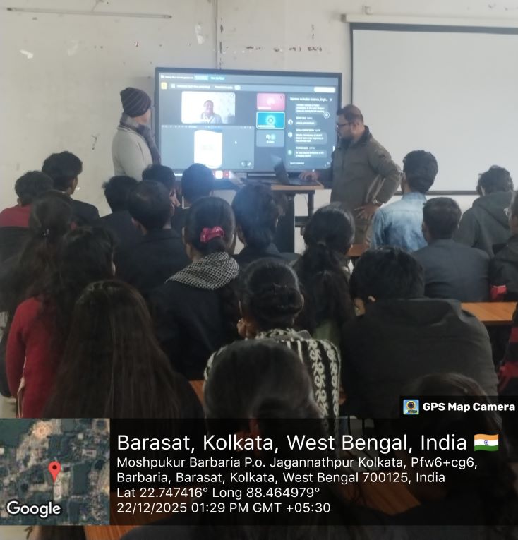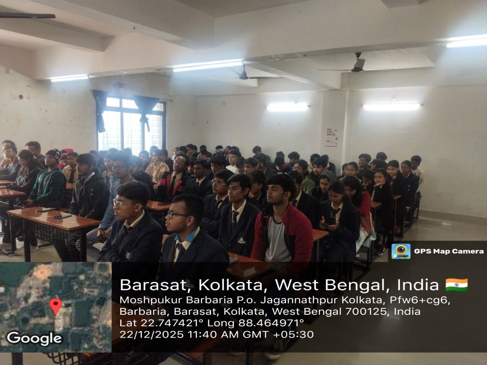 A seminar on Indian Knowledge Systems (IKS) was organized for first-year students as an integral part of the academic curriculum. The session was conducted by Professor Dr. Somsubhra Gupta, whose immense expertise and deep understanding of IKS enriched the learning experience. The seminar offered valuable insights into India’s traditional knowledge frameworks, encouraging students to appreciate indigenous wisdom and its relevance in contemporary academic and professional contexts.